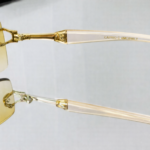 부드러운 노란 그라데이션 렌즈가 적용된 림리스 스타일 선글라스로,
