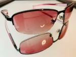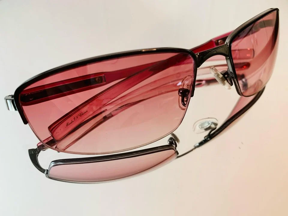 부드러운 핑크 그라데이션 렌즈가 적용된 와이드 선글라스로, 넓은 시야를 확보해주면서도 얼굴 라인을 자연스럽고 세련되게 표현해줍니다.
